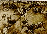 The series La Tauromaquia (The Bullfighting), 1814-1816, represents bullfights as they were held in those times. The beauty and the courage of the spectacle are outstanding.