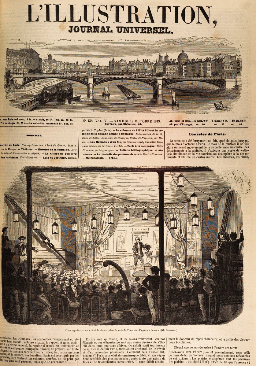 - Une représentation à bord du « Gomer », d’après un dessin de M. Doussaut (gravure)